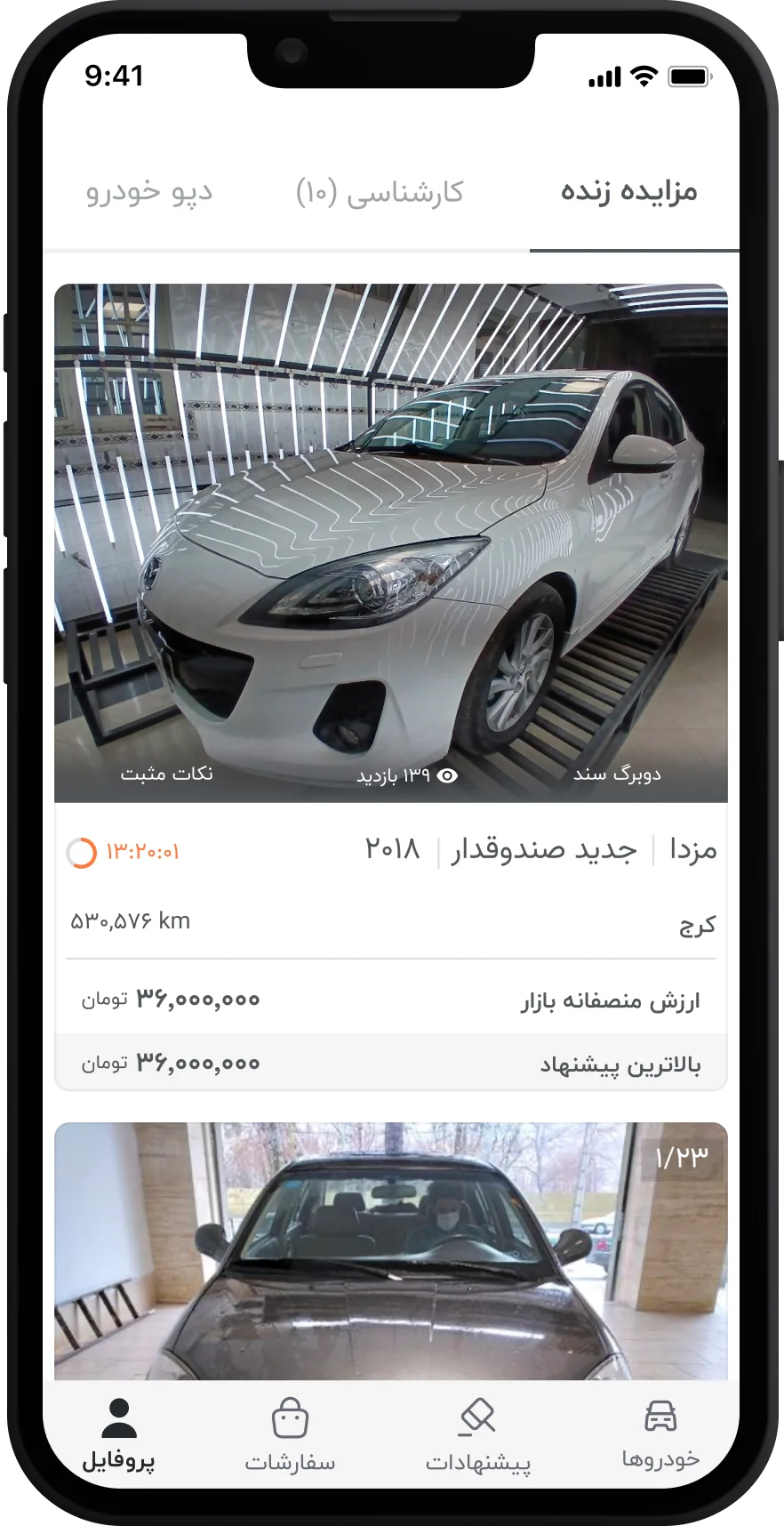 خودرو۴۵ با ایجاد پلتفرمی امن و تسهیلگر، تجربهای متفاوت از خرید خودرو را برای خریداران خودرو فراهم کرده است. با گزارشهای کارشناسی گارانتیشده و تاییدیه حقوقی تضمینی، شما میتوانید در صدها مزایده آنلاین روزانه از سراسر کشور شرکت کنید و با آسودگی، خودروی مورد نظر خود را انتخاب کنید. تمامی مراحل، از کارشناسی تا ارسال خودرو، توسط خودرو۴۵ انجام میشود. این فرآیند از طریق اپلیکیشن اختصاصی خودرو۴۵ برای شرکای تجاری در دسترس است.