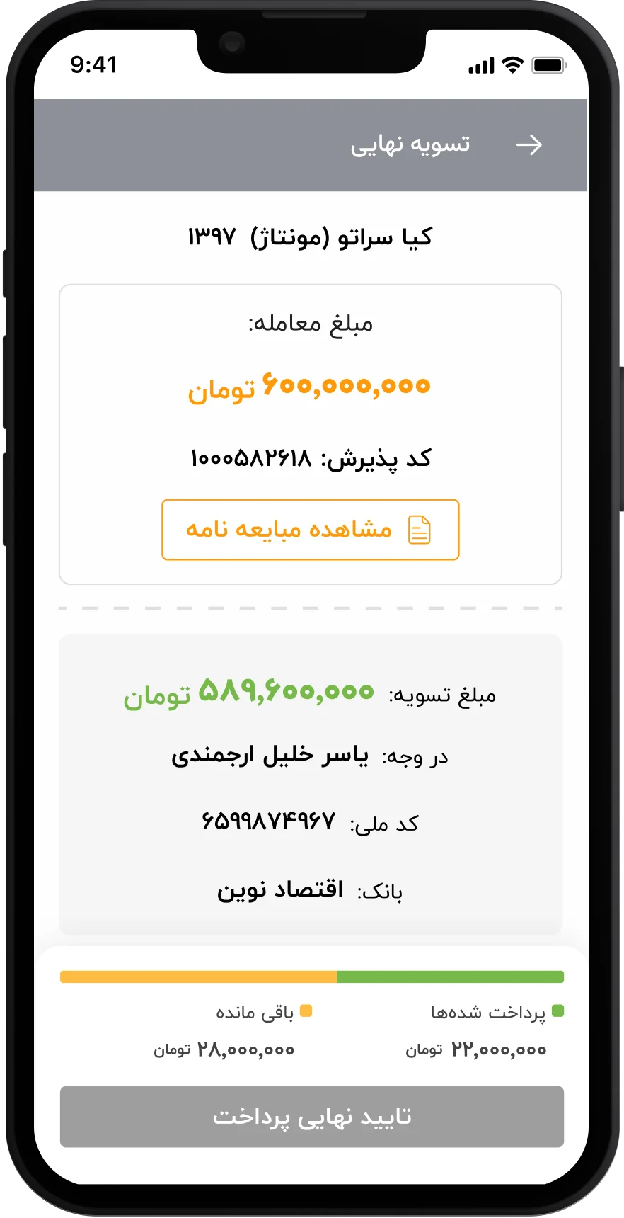 با وارد شدن به اپلیکیشن، امکان تعامل در مزایدههای آنلاین در سراسر کشور با گزارش کارشناسی تضمینی، تاییدیه حقوقی و قیمتگذاری اولیه برای شما فراهم است. معامله گر با بالاترین پیشنهاد، برنده مزایده خواهد بود.