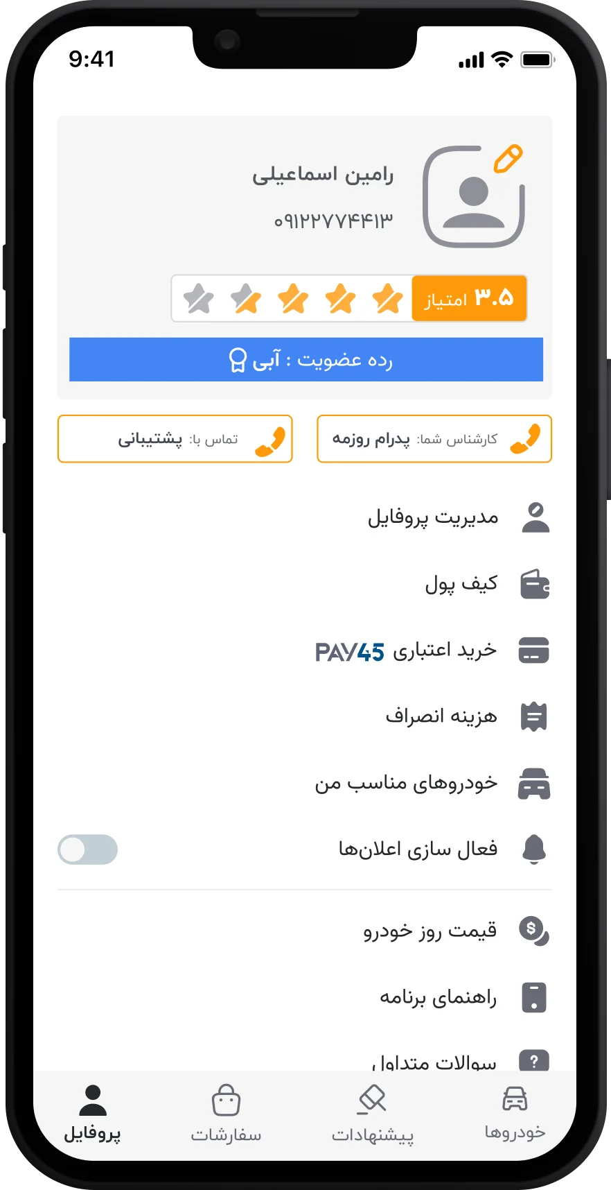 بعد از ایجاد درخواست در قسمت ثبتنام شرکای تجاری و احراز هویت توسط کارشناسان خودرو۴۵، اپلیکیشن اختصاصی در اختیار شما قرار خواهد گرفت.